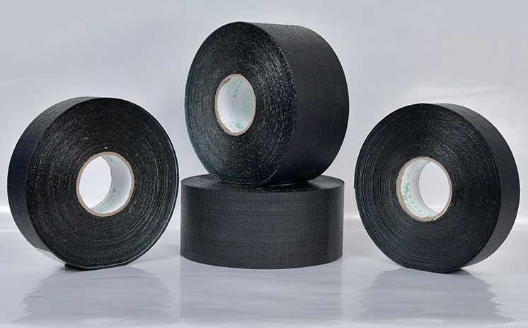 聚丙烯防腐冷纏帶是我公司在2002年引進國外先進流程工藝,參照當時國內防腐膠粘帶技術標準SY/T 0414-1998性能要求,選用獨特的改性聚丙烯網狀增強編織纖維土工布做基材,以丁基橡膠和聚異丁烯將高牌號石油瀝青改性后做膠層,通過熱復合技術試制成功的。